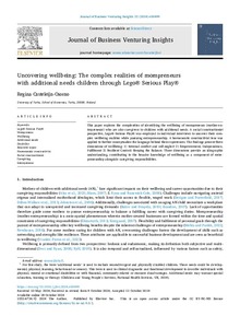 This paper explores the complexities of identifying the wellbeing of mompreneurs (mother-entrepreneurs) who are also caregivers to children with additional needs. A social constructionist perspective, Lego® Serious Play® was employed in individual interviews to uncover their complex wellbeing realities while pursuing entrepreneurship. A hermeneutic constructivist lens was applied to further conceptualize the language behind their experiences. The findings present three dimensions of wellbeing: 1) Internal conflict and self-neglect 2) Empowerment, Independence, Fulfilment 3) Resilient Control: Keeping the Balance. These dimensions provide an idiographic understanding, contributing to the broader knowledge of wellbeing as a component of entrepreneurship alongside caregiving responsibilities.