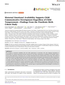 Maternal Emotional Availability Supports Child Communicative Development Regardless of Child Temperament: Findings From the FinnBrain Birth Cohort Study