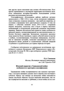 Женский нарратив о Гражданской войне: особенности и критерии классификации