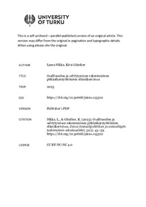 Tutkimuksessa tarkastellaan pitkäaikaistyöttömien selviytymisen ja osallisuuden kokemuksia yhteiskunnan marginaaleissa. Pitkäaikaistyöttömyys lisää usein yksinäisyyden ja osattomuuden kokemuksia sekä aiheuttaa köyhyyttä ja jopa ennenaikaista kuolleisuutta. Kysymme, miten selviytyminen ja osallisuus rakentuvat pitkäaikaistyöttömien elämäntarinoissa? Aineistona ovat viiden pitkäaikaistyöttömän haastattelut, joita analysoimme narratiivisella tutkimusotteella. Tutkimustulosten mukaan elämän aikana omaksutut mallitarinat heijastivat henkilön sisäisiä tarpeita, joihin myös palveluilla kyettiin vastaamaan. Suurin osa haastateltavista muodostivat selviytyjän tarinan. Näissä haastateltavien tarpeet ja resurssit kohtasivat, jolloin sisäinen tarina ja eletty elämä lähenivät. Selviytyminen voimistui osallisuuden laajentuessa eri elämänalueille. Osallisuus rakentui tarinoissa tilallisesti, johon vaikuttivat aika ja liike. Selviytyminen oli vähäisintä tarinoissa, joissa esiintyi runsaammin mielenterveyden oireilua, mutta näissäkin tarinoissa rakentui osallisuuden kokemuksia. Vastapuheen avulla pitkäaikaistyötön pyrki kyseenalaistamaan itseensä kohdistuneita määrityksiä ja stigmaa.