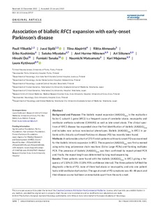 Conclusions: Our results suggest that (AAGGG)exp in RFC1 is a rare cause of early-onset PD. Other populations should be examined in order to determine whether our findings are specific to the Finnish population.
