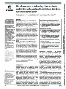 Risk of severe mood and anxiety disorders in the adult children of parents with alcohol use disorder : a nationwide cohort study
