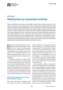 Väestön vanheneminen ja kroonisen munuaistaudin taustalla olevien sairauksien yleistyminen ovat tuoneet munuaisten kroonisen vajaatoiminnan yhdeksi merkittävimmistä kansansairauksista. Arviolta kolmannes munuaisten vajaatoimintapotilaista on 65 vuotta täyttäneitä. Suhteellisen terveen iäkkään stabiili, korkeintaan kohtalaisesti (glomerulusten laskennallinen suodatusnopeus, eGFR vähintään 45 ml/ min/1,73 m2 ) heikentynyt munuaisten toiminta ei ole merkki sairaudesta, ei edellytä erikoisruokavalioita eikä heikennä elinajan odotetta. Se on kuitenkin huomioitava esimerkiksi lääkehoidossa. Vanhenemiseen liittyvä fysiologisten reservien väheneminen altistaa sekä akuutille munuaisvauriolle että sen jälkeen kehittyvälle krooniselle munuaistaudille. Akuutin munuaisvaurion riskin lisääntyminen lieneekin munuaisten ikääntymisen tärkein yksittäinen kliininen seuraus. Vanhenemismuutoksilla ja munuaissairauksilla on yhteisiä biologisia mekanismeja, ja solujen vanhenemiseen johtavilta aineenvaihdunta- ja signaalireiteiltä toivotaan löydettävän lääkkeitä munuaistautien hoitoon.