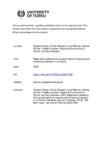 Respiratory plasticity during acclimation to hypoxia and following a recovery in normoxia
