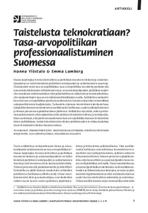 Osana laajempaa hyvinvointivaltion ja politiikan muutosta tiedosta ja asiantuntijuudesta on tullut keskeisiä poliittisen toimijuuden ja vaikuttamisen muotoja. Tämä koskee myös tasa-arvopolitiikkaa: tasa-arvopoliittisia tavoitteita pyritään yhä useammin edistämään erikoistuneen tasa-arvoasiantuntijuuden, politiikan tarpeisiin muokatun tutkimustiedon sekä julkishallinnon välineisiin ja toimintakulttuuriin mukautettujen tasa-arvon edistämistekniikkojen avulla. Artikkelissa tarkastellaan tätä tasa-arvopolitiikan professionaalistumista Suomessa käyttäen esimerkkinä sukupuolitietoista budjetointia. Tarkastelu sidotaan teoreettiseen keskusteluun epäpolitisoitumisesta keskeisenä uusliberaalin hallinnan, uuden julkisjohtamisen ja tietoon perustuvan päätöksenteon piirteenä. Artikkelissa kysytään, miten professionaalistuminen sekä epäpolitisoi että politisoi feminististä tietoa ja toimijuutta. Siinä osoitetaan, että professionaalistunut tasa-arvopolitiikka kanavoi feminististä tietoa politiikkaan, mutta häivyttäessään tiedon poliittisuuden se uhkaa kadottaa myös feministisen tiedon muutosvoiman.