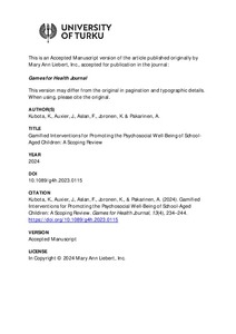 Gamified Interventions for Promoting the Psychosocial Well-Being of School-Aged Children : A Scoping Review