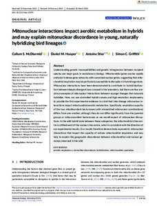 Mitonuclear interactions impact aerobic metabolism in hybrids and may explain mitonuclear discordance in young, naturally hybridizing bird lineages