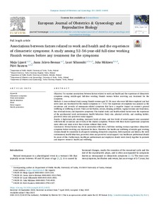 Associations between factors related to work and health and the experience of climacteric symptoms: A study among 52–56-year-old full-time working Finnish women before any treatment for the symptoms