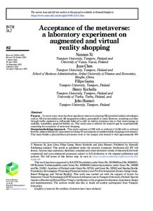 Acceptance of the metaverse : a laboratory experiment on augmented and virtual reality shopping