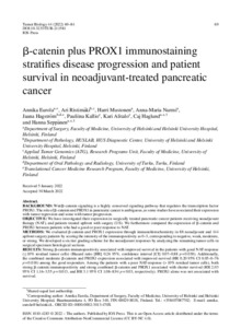 β-catenin plus PROX1 immunostaining stratifies disease progression and patient survival in neoadjuvant-treated pancreatic cancer