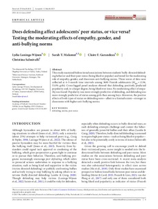 Does defending affect adolescents' peer status, or vice versa? Testing the moderating effects of empathy, gender, and anti-bullying norms