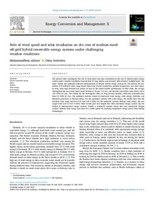 Role of wind speed and solar irradiation on the cost of medium-sized off-grid hybrid renewable energy systems under challenging weather conditions
