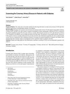 Purpose of Review The study aims to describe methods for detecting subclinical coronary artery disease (CAD) and their potential implications in asymptomatic patients with diabetes.