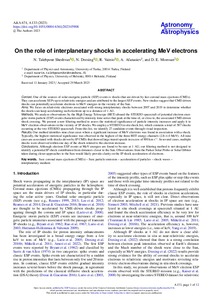 Conclusions. Although electron ESP events at MeV energies are found to be rare at 1 AU, our filtering method is not designed to identify a potential IP shock contribution from distances closer to the Sun. Observations from the Parker Solar Probe or Solar Orbiter taken during closer approaches to the Sun would likely provide clarity on the IP shock acceleration of electrons.