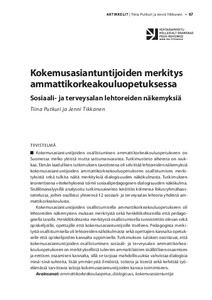 Kokemusasiantuntijoiden osallistuminen ammattikorkeakouluopetukseen on Suomessa melko yleistä mutta sattumanvaraista. Tutkimustieto aiheesta on niukkaa. Tämän laadullisen tutkimuksen tavoitteena oli selvittää lehtoreiden näkemyksiä kokemusasiantuntijoiden ammattikorkeakouluopetukseen osallistumisen merkityksistä sekä tulkita näitä merkityksiä dialogisuuden näkökulmasta. Tutkimuksen teoreettisena viitekehyksenä toimii sosiaalipedagoginen dialogisuuden näkökulma. Sisällönanalyysillä analysoitu tutkimusaineisto kerättiin kolmessa fokusryhmähaastattelussa, joihin osallistui yhteensä 12 sosiaali- ja terveysalan lehtoria yhdestä ammattikorkeakoulusta.