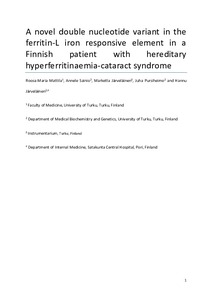 To present a novel Finnish double nucleotide variant in the iron-responsive element (IRE) of the ferritin L-chain gene (FTL) leading to hyperferritinaemia-cataract syndrome (HHCS).