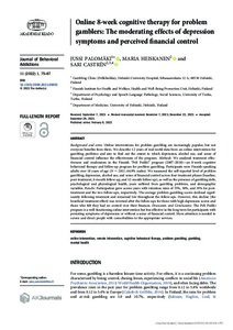 Online 8-week cognitive therapy for problem gamblers: The moderating effects of depression symptoms and perceived financial control
