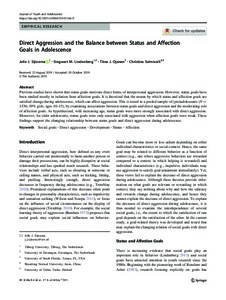 Direct Aggression and the Balance between Status and Affection Goals in Adolescence
