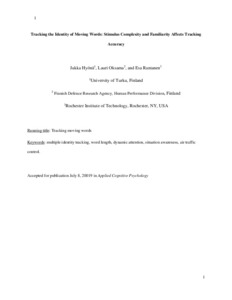 Tracking the Identity of Moving Words: Stimulus Complexity and Familiarity Affects Tracking Accuracy