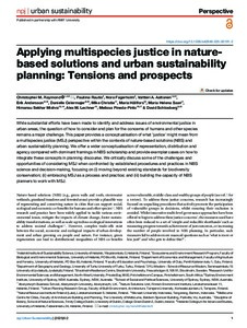 Applying multispecies justice in nature-based solutions and urban sustainability planning: Tensions and prospects