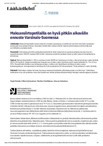 Lähtökohdat : Maksansiirtopotilaiden lyhyen aikavälin ennusteen parantuessa on tutkittu yhä enemmän kroonisten sairauksien esiintyvyyttä tässä potilasryhmässä. Sairauksien kehittymistä voidaan ehkäistä hyljinnänestolääkityksen optimoinnilla sekä säännöllisillä seurantakäynneillä. Menetelmät : Tutkimuksessa kerättiin potilastietojärjestelmästä tiedot maksansiirron saaneista potilaista Varsinais-Suomen sairaanhoitopiirissä (VSSHP) vuodesta 2000 lähtien. Aineistosta selvitettiin potilaiden lyhyen ja pitkän aikavälin komplikaatiot ja selviytyvyys. Tulokset : Maksansiirtopotilailla (n = 89) on suotuisa ennuste VSSHP:ssä. Selviytyvyys oli yhden, viiden ja kymmenen vuoden kohdalla 100 %, 93 % ja 86 %. Syöpien kumulatiivinen ilmaantuvuus oli yhden, viiden, kymmenen ja 20 vuoden kohdalla 0 %, 7 %, 11 % ja 39 %. Munuaisfunktio heikkeni vuosi leikkauksen jälkeen, mutta ei enää tilastollisesti merkitsevästi viiden vuoden tarkastelupisteessä. Verenpainetauti oli kehittynyt 56 %:lle, dyslipidemia 18 %:lle ja diabetes 7 %:lle potilaista 5 vuoden kohdalla. Päätelmät : Tutkimuksen mukaan Varsinais-Suomessa maksansiirtopotilaiden pitkäaikaisennuste on erittäin hyvä. Tutkimuksen heikkoutena oli se, että potilaista ei aina ollut käytettävissä kaikkia potilasasiakirjamerkintöjä Helsingin maksakirurgisesta yksiköstä.