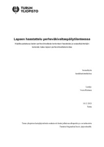 Tässä kandidaatintutkielmassa tarkastelen integroivan kirjallisuuskatsauksen menetelmin lasten perheväkivallasta kertomista vaikeuttavia tekijöitä ja sosiaalityöntekijän keinoja tukea lapsen perheväkivaltakerrontaa haastattelussa. Aineistona käytän tieteellisistä tietokannoista hankittuja vertaisarvioituja tutkimuksia. Teoreettisena viitekehyksenä käytän lapsen haastatteluun ja perheväkivaltaan liittyviä käsitteitä sekä aiempaa aihepiirin tutkimusta. Tutkielman tavoitteena, on tunnistaa koota ja luokitella sekä lasten perheväkivaltakerrontaa vaikeuttavat tekijät että ne sosiaalityöntekijän keinot, jotka tukevat lapsen mahdollisuuksia kertoa kokemastaan perheväkivallasta haastattelutilanteessa.