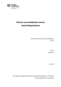 Tämä tutkielma käsittelee pienten suunnittelijoiden asemaa kopiointi tapauksissa. Immateriaalioikeuksista käsittelyssä ovat tekijänoikeus ja mallioikeus, jotka molemmat sopivat hyvin muotiluomusten suojaamiseen. Tutkielmassa verrataan pienten suunnittelijoiden oikeudellista ja yhteiskunnallista asemaa suurempiin yrityksiin, joilla on suuremmat taloudelliset sekä organisatoriset resurssit käytettävissään. Tutkimus keskittyy pieniin suunnittelijoihin, joilla ei ole taustallaan näitä edellä mainittuja tekijöitä tukemassa luovalla alalla menestymistä. Tutkimus on monitieteinen, jossa keskitytään lainopillista metodia hyödyntäen tarkastelemaan nykyistä oikeustilaa. Tutkimuksessa hyödynnetään lisäksi muodintutkimusta selvittämään muotimaailman hierarkkisia rakenteita. Yrityksen toimintaan syvennyttäessä hyödynnetään oikeustaloustieteellistä näkökulmaa. Tutkielman tutkimuskysymyksenä on selvittää, millaisia eroja pienten suunnittelijoiden ja suurten yritysten oikeudellisessa ja yhteiskunnallisessa asemassa ilmenee kopiointitapauksissa. Keskeisenä havaintona oli, että suuremmat toimijat pystyvät hyödyntämään immateriaalioikeusjärjestelmää tehokkaammin kuin pienemmät suunnittelijat. Pienemmillä tekijöillä ilmeni haasteita oikeuksien täytäntöönpanossa muun muassa psykologisten ja taloudellisten tekijöiden takia. Immateriaalioikeusjärjestelmä voidaan katsoa lainsäädännöllisesti riittäväksi nykyisessä muodossaan. On kuitenkin huomattavissa, että se osaltaan voi jäädä pienelle suunnittelijalle saavuttamattomaksi. Tässä kohdin pohdintaan voisi nousta, että pystyisikö esimerkiksi kilpailuoikeudellisten mekanismien avulla parantaa pienten suunnittelijoiden oikeusasemaa.