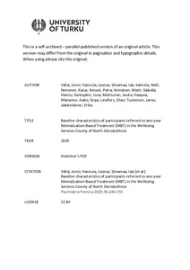 Baseline characteristics of participants referred to one-year Mentalization-Based Treatment (MBT) in the Wellbeing Services County of North Ostrobothnia