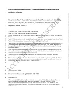 Cold-induced serum short-chain fatty acids act as markers of brown adipose tissue metabolism in humans
