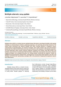 Multiple sclerosis (MS) is a complex immune-mediated disease that leads to neurological disability, with ongoing challenges in understanding its initiation, predicting progression, and optimizing personalized treatment. This review article summarizes key research findings from 2024, covering advances in diagnostic criteria, understanding of pathophysiology, and treatment strategies. New studies reinforce the strong link between Epstein-Barr virus (EBV) and MS, while recent data point towards a role of genetics in MS disease progression. The 2024 McDonald criteria revision enhances diagnostic specificity and includes novel MRI markers and facilitates measurement of cerebrospinal fluid biomarkers. Additionally, recent genetic discoveries, advanced imaging techniques, and emerging biomarkers are refining disease monitoring and prognosis. Finally, we highlight promising therapeutic developments, including Bruton Tyrosine Kinase (BTK) inhibitors and CAR T-cell therapies, with the former representing a paradigm shift in the potential of targeting MS progression beyond focal inflammation.