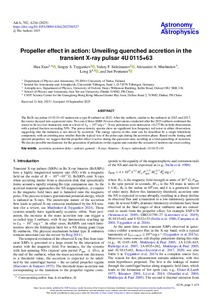 The Be/X-ray pulsar 4U 0115+63 underwent a type II outburst in 2023. After the outburst, similar to the outbursts in 2015 and 2017, the source decayed into a quiescent state. Two out of three XMM-Newton observations conducted after the 2023 outburst confirmed the source to be in a low-luminosity state at a level of LX ∼ 1033 erg s−1. X-ray pulsations were detected at ≈0.277 Hz in both observations with a pulsed fraction exceeding 50%. The power density spectra show no significant low-frequency red noise in either observation, suggesting that the radiation is not driven by accretion. The energy spectra in this state can be described by a single blackbody component, with an emitting area smaller than the typical size of the polar caps during the accretion phase. Based on the timing and spectral properties, we suggest that the propeller effect is active during the quiescent state, resulting in a total quenching of accretion. We discuss possible mechanisms for the generation of pulsations in this regime and consider the scenario of neutron star crust cooling.
