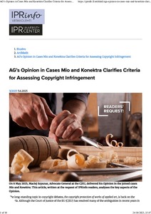 AG’s Opinion in Cases Mio and Konektra Clarifies Criteria for Assessing Copyright Infringement