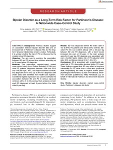 Bipolar Disorder as a Long‐Term Risk Factor for Parkinson's Disease: A Nationwide Case–Control Study