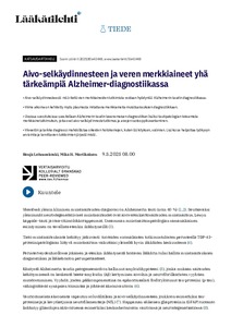• Aivo-selkäydinnesteestä määritettävien merkkiaineiden tutkimista voidaan hyödyntää Alzheimerin taudin diagnostiikassa.