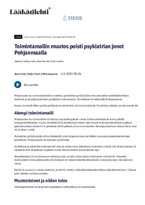Toimintamallin muutos poisti psykiatrian jonot Pohjanmaalla
