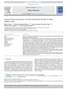 Objective: To evaluate the long-term effect of ammonia- and water-based silver fluoride treatments on the degradation of the dentin collagen matrix.