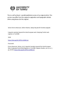 Linguistic variation beyond the Indo-European web: Analyzing Turkish web registers in TurCORE
