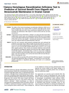 Purpose: The ability of the Geneva homologous recombination deficiency (HRD) test to predict progression-free survival (PFS) in patients with high-grade ovarian cancer treated with poly (ADP-ribose) polymerase inhibitors has been demonstrated. Its performance with respect to overall survival (OS) has not been assessed yet.