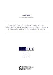 Artikkelissa analysoidaan laadullisin menetelmin oikeustieteen yliopisto-opiskelijoille Yhdysvalloissa tarjottavaa neuvottelutaidon opetusta koskevaa tutkimusmateriaalia. Tavoitteena on tuottaa tutkittuun tietoon perustuvaa materiaalia kotimaisen neuvottelutaidon opetuksen ja juristiprofession kehittämisen tueksi. Tämä on tarpeen, koska tutkimusten mukaan Suomessa yliopistoista valmistuneet oikeustieteen maisterit kokevat neuvottelutaidot työelämärelevanssiltaan merkittävästi tärkeämmiksi kuin mihin yliopisto-opinnot antavat valmiuksia. Tutkimuksen keskeiset tulokset liittyvät sekä opetuksen sisältöön että opetuksen tapaan. Tutkimuskatsauksen tuloksia voidaan merkittävästi hyödyntää kotimaisen oikeustieteen yliopisto-opiskelijoille suunnatun neuvottelutaidon opetuksen ja tätä kautta koko juristiprofession kehittämisen tukena.
