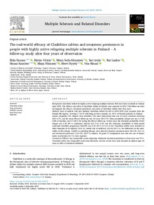 Cladribine tablets for highly active relapsing multiple sclerosis (MS) have been available in Finland since 2018. The efficacy and safety of cladribine tablets in Finland were reported in 2022. This follow-up study investigated the efficacy, treatment persistence and safety of cladribine tablets after four years.