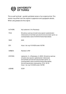 Elinikäistä ohjausta toteutetaan ammatillisessa koulutuksessa opinto- ja uraohjauksena tavoitellen työllistymissiirtymien vahvistamista, jatko-opintomahdollisuuksia ja yhteiskunnallista osallisuutta. Ammatillisessa koulutuksessa ohjauksesta vastaa yleensä ammatillinen opettaja tai ammatillinen erityisopettaja osana henkilökohtaistamisprosessia. Tutkimuksen tavoitteena on selvittää opiskelijoiden näkemyksiä saamastaan opinto- ja uraohjauksesta ja tarkastella, miten ne vastaavat Life design- teoriaan ja Hyvän ohjauksen kriteereihin. Tutkimuskysymys on, miten Hyvän ohjauksen kriteerit toteutuvat erityistä ja vaativaa erityistä tukea saavien opiskelijoiden ammatillisessa perustutkintokoulutuksessa.