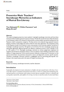Preservice Music Teachers’ Soundscape Memories as Indicators of Musical Eco-Literacy