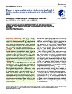 Over the last 2 decades, the treatment of Achilles tendon rupture (ATR) has shifted from surgery to non-surgical methods. We aimed to analyze whether this change in treatment methods has had an impact on the number of compensated patient injuries in Finland and the grounds for compensation. We also aimed to investigate where injuries occur along the treatment pathway.
