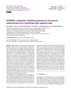 Quantification of proxy records obtained from geological archives is key for extending the observational record to estimate the rate, strength, and impact of past climate changes but also for validating climate model simulations, improving future climate predictions. SCUBIDO (Simulating Climate Using Bayesian Inference with proxy Data Observations) is a new statistical model for reconstructing palaeoclimate variability and its uncertainty using Bayesian inference on multivariate non-biological proxy data. We have developed the model for annually laminated (varved) lake sediments, as they provide a high temporal resolution to reconstructions with precise chronologies. This model uses non-destructive X-ray fluorescence core scanning (XRF-CS) data (chemical elemental composition of the sediments) because it can provide multivariate proxy information at a near-continuous, sub-millimetre resolution, and, when applied to annually laminated (varved) lake sediments or sediments with high accumulation rates, the reconstructions can be of an annual resolution. Whilst this model has been built for this proxy type, its flexibility means that the model could be applied to other multivariate proxy datasets.