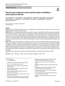 Aberrant type 2 dopamine and mu-opioid receptor availability in autism spectrum disorder