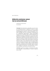 Tässä tutkimuksessa tarkastellaan sanan harva käyttöä kvanttoripronominina ja adjektiivina. Aineisto on kerätty korpuksesta ParRus, joka koostuu alkuperäisistä venäjänkielisistä kaunokirjallisuuden teksteistä ja niiden suomennoksista. Artikkelissa selvitellään sanan harva semantiikkaa vertailemalla sanaa sen venäjänkielisiin lähtömuotoihin. Analyysi havainnollistaa kvanttorin harva semantiikan osalta sen käyttöä absoluuttisena ja suhteellisena kvanttorina. Absoluuttisena se viittaa yleisesti vähälukuisuuteen ja suhteellisena määrittelee osapaljouden entiteettejä. Lähtömuodon redkij ’harva, harvinainen’ yleisyys kertoo siitä, että kvanttorin merkitykseen sisältyy harvinaisuuden korostaminen. Adjektiivin harva tehtävät voidaan jakaa kuvaileviin ja frekvenssiä ilmaiseviin, jolloin se vastaavanlaisesti kuvailee staattisia näköhavaintoja tai luonnehtii dynaamisten näkö- tai kuulohavaintojen toistuvuutta. Tutkimuksen tuloksia pohditaan lopuksi sellaisten kognitiiviseen kielioppiin liittyvien ilmiöiden valossa kuin polysemia, negatiivinen polaarisuus, konventionaalisuus, metaforisuus, asteikollisuus, skemaattisuus ja kontekstin merkitys.