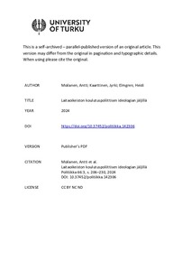 Artikkelissa analysoimme kahden suomalaisen ja kahden saksalaisen laitaoikeistopuolueen koulutuspoliittisia ohjelmia. Tarkastelemiamme puolueita ovat Suomessa perussuomalaiset ja sinimusta liike sekä Saksassa vaihtoehto Saksalle (Alternativ für Deutschland) ja Saksan kansallisdemokraattinen puolue (Nationaldemokratische Partei Deutschlands, nykyiseltä nimeltään Heimat eli kotimaa). Artikkelin tutkimuskysymyksenä on, miten nämä puolueet muotoilevat koulutuspoliittisissa ohjelmissaan laitaoikeistopuolueille tyypillisiä koulutuspoliittisia ideoita sekä millaisia yhtäläisyyksiä ja eroavaisuuksia ohjelmien välillä on. Vastaamme kysymyksiin analysoimalla puolueiden koulutuspoliittisia ja muita ohjelmia teoriaohjaavan sisällönanalyysin keinoin. Sisällönanalyysin ohjaavat kategoriat johdamme aikaisemmista laitaoikeiston koulutuspolitiikkaa koskevista tutkimuksista. Analyysimme osoittaa, että tarkastelemamme laitaoikeistolaiset koulutuspoliittiset ohjelmat ovat varsin samankaltaisia. Niiden ohjelmissa korostuu intellektualismin vastaisuus ja koulutuksen ymmärtäminen välineellisesti, erityisesti taloudellisen hyödyn kategorioin. Ne painottavat oppisisällöissä kansallisen identiteetin merkitystä, korostavat urheilun tärkeyttä koulujen opetussuunnitelmissa ja syyttävät nykyisiä koulutusinstituutioita ideologisesta iskostamisesta eli indoktrinaatiosta. Lisäksi ohjelmat pitävät tärkeänä oppilaiden ulkoista eriyttämistä heidän osaamistasonsa mukaan ja vaativat kouluihin opettajien auktoriteetin, kurin ja järjestyksen kunnianpalautusta. Useat näistä lähtökohdista ovat ristiriidassa liberaalin demokratian arvojen ja ihanteiden kanssa.