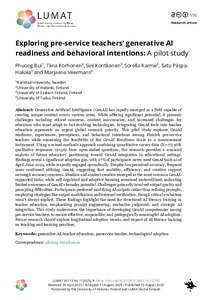 Generative Artificial Intelligence (GenAI) has rapidly emerged as a field capable of creating unique content across various areas. While offering significant potential, it presents challenges including ethical concerns, content inaccuracies, and increased challenges for educators who must adapt to fast-evolving technologies. Integrating GenAI tools into teacher education represents an urgent global research priority. This pilot study explores GenAI readiness, experiences, perceptions, and behavioral intentions among Finnish pre-service teachers while examining the feasibility of the GenAI Readiness Scale as a measurement instrument. Using a mixed-methods approach combining quantitative survey data (N=77) with qualitative responses (n=56) from open-ended questions, the research provides a nuanced analysis of future educators’ positioning toward GenAI integration in educational settings. Findings reveal a significant adoption gap, with 27% of participants never used GenAI tools as of April-June 2024, while majority engaged sporadically. Despite low perceived accuracy, frequent users continued utilizing GenAI, suggesting that usability, efficiency, and creative support outweigh accuracy concerns. Ideation and content creation emerged as the most common GenAI-supported tasks, while self-regulated and adaptive learning remained underutilized, indicating limited awareness of GenAI’s broader potential. Challenges primarily involved output quality and prompting difficulties. Participants preferred modifying AI outputs rather than refining prompts, employing strategies like output modification and external verification, though critical evaluation wasn’t always explicit. These findings highlight the need for structured AI literacy training in teacher education, emphasizing prompt engineering, evaluative judgment, and strategic AI integration. This study underscores the importance of developing GenAI competencies among pre-service teachers to ensure effective, responsible, and pedagogically meaningful AI adoption. Future research should explore longitudinal adoption trends, and impact of AI literacy training on teaching and learning practices.