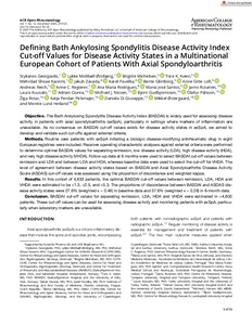 Defining Bath Ankylosing Spondylitis Disease Activity Index Cut‐off Values for Disease Activity States in a Multinational European Cohort of Patients With Axial Spondyloarthritis