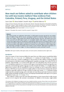 How much are fathers asked to contribute when children live with low-income mothers? New evidence from Colombia, Finland, Peru, Uruguay, and the United States